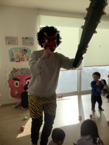 鬼が登場すると、びっくりして先生の後ろに隠れる子、勇気を出して豆を投げる子、ポカンと見つめる子…それぞれの姿がとても微笑ましかったです😊