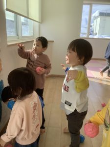 「おにはそと!」「ふくはうち!」と元気な声が園内に響いていました。